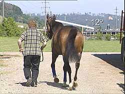 Die durchgeführte Behandlung sowie weitere anzuwendende Massnahmen werden mit dem Halter des Pferdes besprochen. Der Chiropraktor erklärt. wo er die Blockierungen gefunden hat und wie das zukünftige Training positiv verändert werden könnte, damit dieses Rennpferd seine Top-Leistungen wieder erbringen kann. |