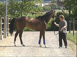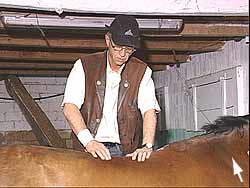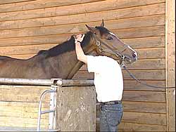 Das Pferd "zeichnet", es es senkt beim Berühren des Schmerzpunktes den Rücken ab (2. Bild).