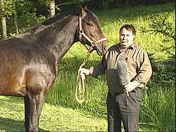 H.R. Gloor , Handelsstall, Dürrenäsch, referiert sichtlich erfreut über seine Erfahrungen mit den chiropraktischen Behandlungen an seinen Pferden. Das Pferd sei jetzt viel gelöster zum Reiten, ausgeglichen auf beide Seiten, mit nur zwei Fingern zu reiten ... die "Rittigkeit" müsse also stimmen.Auch Schweifschiefträger können behandelt werden. |